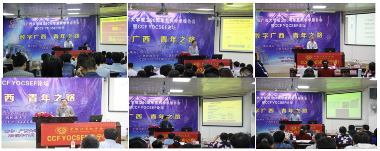 2018年11月10日,由CCF YOCSEF南宁(筹)、广西大学、广西民族大学、广西财经学院和广西帆联科技有限公司联合举办的“数字广西,青年之路”科技论坛在广西大学计算机与电子信息学院举行。